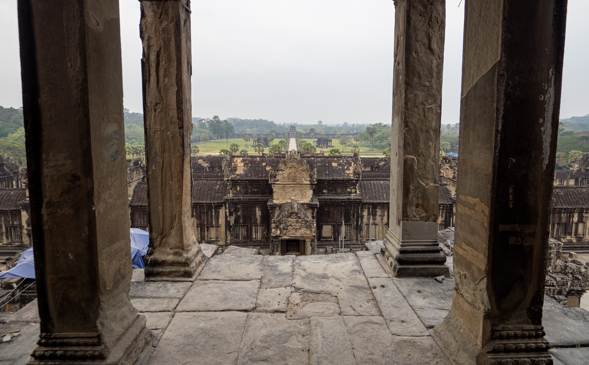 Angkor Wat is arranged in a quincunx formation, with four towers making a cross shape and a fifth tower rising above them in the center of it. I was able to climb the extremely steep stairway up the top of the uppermost tower and get a bird's-eye view of the temple complex, which was breathtaking. It was also a bird's-eye view with some birds; I saw my lifer Shikra being chased around by Ashy Drongos, as well as lots of Lineated Barbets and Black-naped Orioles. But mostly I was focused on the view and the amazing architecture.