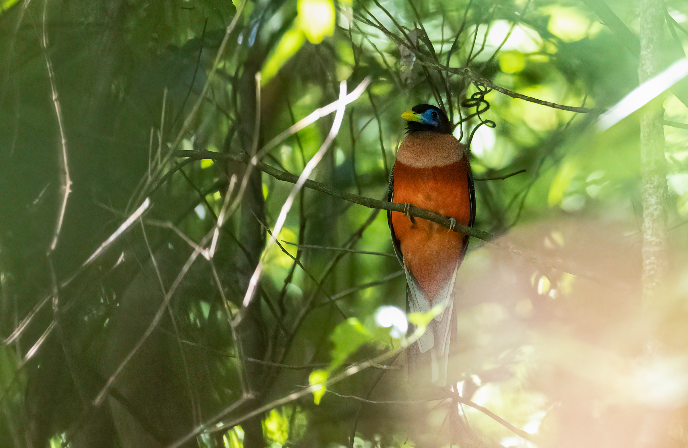 We were able to add Philippine Fairy-bluebird and Balicassiao to our list, and we flushed another Luzon Bleeding-heart off of the trail, though it immediately flew out of view into dense foliage. The next time I visit Bulusan Lake (whenever Mount Bulusan stops its current temper tantrum) I'll probably just focus exclusively on finally photographing one of the damn things. Soon we heard the warbling calls of a Philippine Trogon further up the slope, and we scrambled up a trail to try and get a look. It took quite a bit of work navigating a rocky trail and trying not to spook the bird, but just as I was about to give up a male trogon flew into view right in front of me- the first time in years I've gotten a good look at that species.