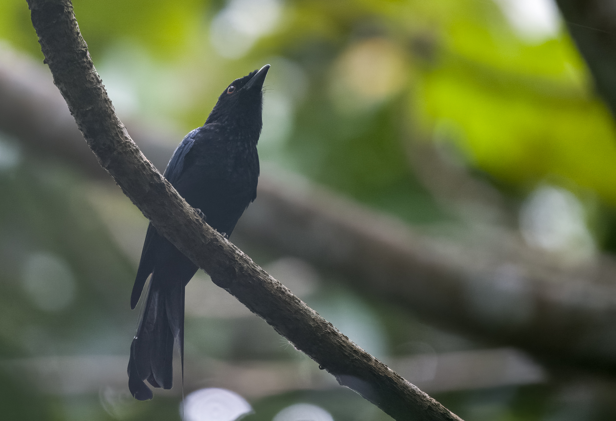 | Greater Racket-tailed Drongo missing its rackets |